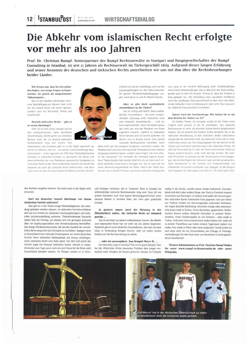 Tagesthema "Türkei" bei DRadio Wissen, dem dritten Programm des Deutschlandradios. Im Interview der Stuttgarter Rechtsanwalt und Türkeiexperte Prof. Dr. Christian Rumpf. Zum Interview [4.558 KB]